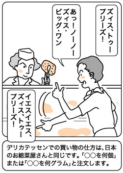急ぐ場合や、疲れている日はきっぱりと割り切って、セルフサービスのカフェテリアやデリカテッセン(量り売りの惣菜屋)のテイクアウトをおすすめします。それでもマクドナルドよりはずっと芸がありますよ。