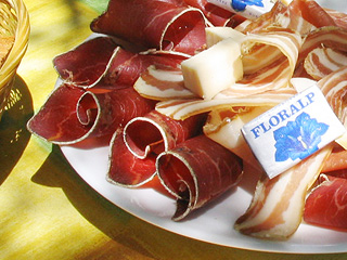 ついでなので白パンの方だが、『ハイジ』原文では Semmel (ゼンメル)となっている。これは日本で売っているフワフワした「ハイジの白パン」ふうのものではなく、しっかりと焼き色のついた、案外堅いパンだ。こちらも文句なくうまい。
