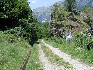 ソアッツァから軌道跡はおおむね車道と並行して走るようになる。夏はもろに太陽光にさらされ、ここから先、徒歩でたどることはあまりお勧めできない。筆者もソアッツアからベリンツォーナまではローカルの郵便バスを利用した。