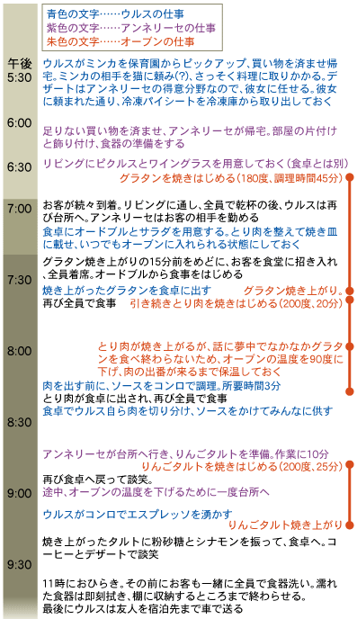 イェンニ=ルッツ家のモデルになってもらった夫婦の住む地区の学校(幼稚園含む)には給食はない。スイス国内の多くが同様である。かわりに昼休みが約2時間あり、子供たちは一旦帰宅して、家で昼食を取ることになっている。学校だけでなく、基本的に職場も昼食時は帰宅というのが大前提なのだが、最近は勤務形態の変化で、そういう習慣の維持が難しくなってきた。今や、不在時に子供をどうするかというのが共働き家庭の大きな悩みである(単に食の問題だけではない)。北欧などとは違い、スイスの共働き家庭に対する行政サービスは、お世辞にも進んでいるとは言い難い