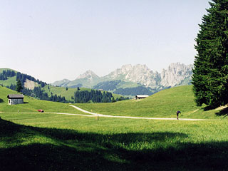 日本のガイドブックではあまり紹介されていないが、実はこの地域はトレッキング/ハイキング天国。激しい侵食作用で独特の風貌になった山々と、ゆったりした牧草地や森のコントラストが、素晴らしい風景を形作っている。