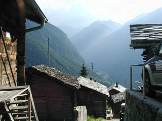 シュタルデン駅から小さなロープウェーで10分ばかり上がったシュタルデン・リートの村(標高1100m前後)に泊まるのは一興。フィスプ川の深い谷底を一気に見おろす急斜面に貼り付いた村で、雰囲気抜群。こちらなら滞在向け度 ★★。ただし足腰超頑強で高所恐怖症の気が全くない人向き。凄い所ですよ!