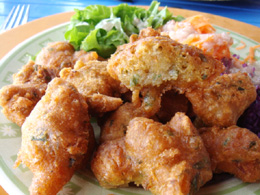 サン・ピエールでの初日のランチは、町を見下ろす高台、何やら「フロマージュ」に似た名前の住所にあるレストランで取った。