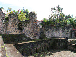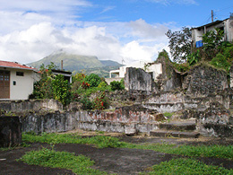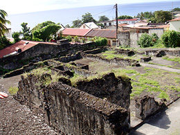 サン・ピエール市街とその周縁には、有名な牢獄のほか、砦や精神病院の遺構(写真)などが、被災当時の焼けただれた姿のまま保存されている。