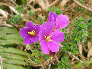 シコンノボタンの仲間。学名は Tibouchina ・・・ となるのだろう。葉がごく小さいのが特徴。