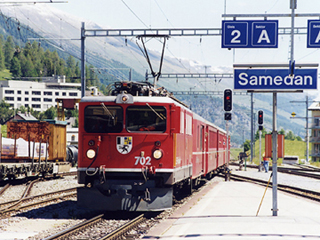 | 娘:……まあ、ホテルの名前だけ覚えているだけでも良しとしよう。ここはサメダンとゆー村です。これ地図ね、ここがサン・モリッツ。で、ここがサメダン。明日行くコルヴァッチュがここで、こう、こーやって歩いて、最後にホテル・ロゼックがここ。あ、そういえば2万5千図を渡すから、明日は持って歩いてね。 |