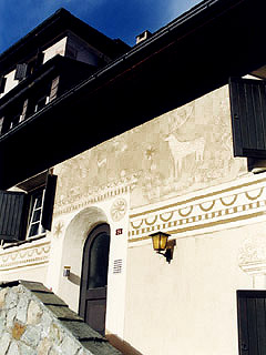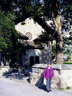 チューリヒから電車を乗り継ぎ4時間、小さな村にしては割合大きな駅に到着しました。最初はこの村にあまり期待していなかったのですが、来てみたら古い建物も多く、裏山にはどっしりした石の教会もあって、意外にいい村です。おまけにホテルも気に入ったし。