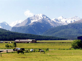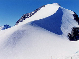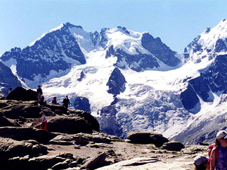| 娘:あれは隣にあるチエルヴァ氷河ね。ロゼック氷河はそこの山の影になっちゃって見えない。 |