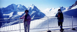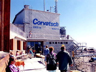 ロープウェーに乗り、標高3303mのコルヴァッチュの展望台へやって来ました。今日は素晴らしい天気で、周りの山も湖もとっても良く見えて気分爽快。ところが娘ときたら、急に高いところにやって来たものだから脳貧血を起こし、日向のベンチでへばっています。そういえば、足で歩いて山に登る時には高所トラブルを起こさない人が、ロープウェーなどの乗り物で上がってくるとダメという話もよく聞きます。