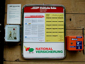 シュピナスにはレーティシュ鉄道の駅もある。ここに停車する列車は1日数本しかないが、もしも時間が合うようだったら、それを利用しても良いだろう。なお、この駅では客の乗降の有無を押しボタンで列車に知らせるようになっている。時刻表では停車することになっている列車も、事前にこの押しボタンで乗車の意志を知らせなければ通過して行ってしまうので注意しよう。