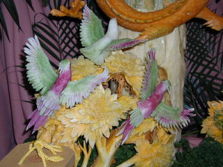 | 初中級コースの周老師作「南瓜の鳳凰」 仕事の合間を縫って製作したと言う力作でした。 |