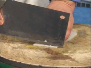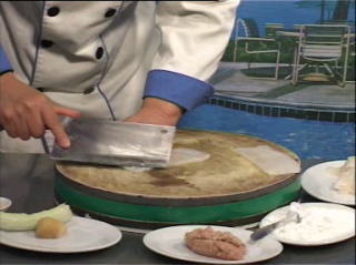 Dこれで、細かいひし形の切り目が入りました。3〜4センチ幅の大きさにきっておきます。
