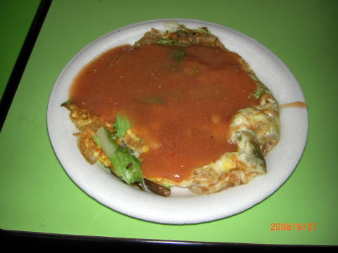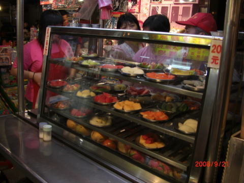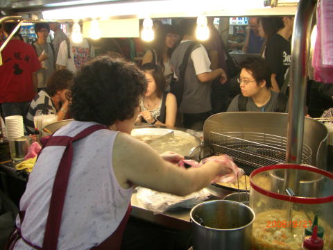 ![]() 朝から晩まで貪欲に食べまくるなんて それだけでも贅沢ですが、 旅の一番の贅沢は 面白い体験をすることにあると思います。 そういう意味では今回のこの旅行、 かなり贅沢な旅になりました。 金かかってませんが…。 ※当時のレート:1元=約3.5円(1ドル=約106円) 9月21日 日曜日 朝9:40 中華航空 成田発 12:20(現地時間) 約3時間半で台湾桃園国際空港着 13:10 バスで空港から台北駅へ 14:10 台北駅着 朝の7:50分ぐらいに成田に着いて手続きをした。 今回の旅行は本当は1年ぐらい前に行く予定だったのだが、 様々なことが重なって行けずじまい。 言わば一年越しの夢がかなったわけだ。 ![]() 今回乗る飛行機は初めての中華航空で、 何よりも機内食が楽しみだった。 食い倒れ旅は機内食から始まるといっても過言ではない。 ![]() この機内食、魚を選んだのだが、 エコノミーといえど今まで食べた中で最下位だった。 人によってはおいしいのだろうけど、 欧米人好みの味付けで、俺としては醤油をかけたくなるような感じだった。 隣に座っていた日本人の男性客はビーフを食べていたけど、 残していたな。 そんなこんなで一番楽しみにしていた機内食が あっけなく終ってしまったので、 地球の歩き方を読んで台北の地理や食べ歩きのコースなどを おさらいした。 1年も前から決めていた旅行とはいえ、 チケットを取ったのは半月前。 ホテルも予約していない。 ただ、食べたいものは決まっていた。 「夜市メニューの制覇」である。 3時間半の飛行機の中で、 計画性の無い旅に無性にわくわくした。 こういうとんでもない旅はほんとに久しぶり。 ![]() そういえば、離陸直前に家族からメールがきたのだが、 家の周りでたくさんのカラスが鳴いていて不吉だったから 気をつけるようにとのこと。 そういわれると、中華航空って事故の多い会社だよな・・・。 と、不安にもなったが定刻通りに台北に到着。 ![]() 台北の天気はいいようで、 飛行機の窓から畑や家がはっきりと見えた。 これだけいい景色を見られたんだから 台北101には登らなくてもいいかな、 なんて思えるほどのいい眺め。 搭乗口を出ると、ムッとする熱気と独特のにおいがした。 久々の南方系カビ臭にちょっとドキドキ。 空港内で3万円を両替し、 8700元弱を財布に入れて、いざ台北の街へ。 空港からはバスで1時間くらいかかった。 隣の席では台北の若者がDSをしながら冗談を言ったりして 盛り上がってる様子だったが、 ほぼ9割がた聞き取れなかった。 これが台湾語というんだろうか。 ちょっと焦った。 バスの外に広がる風景は緑が多く、 日本の風景とそんなに変わらない感じ。 なんかの競技場にデカデカと深田恭子の看板が見えた。 メナードの広告らしいけど、 なんか、油断してしまうな。 海外に来たという気合が入らなかった。 ![]() 台北駅 みんな地下道を通るので、駅周辺は人がまばら バスは台北駅のすぐ横に止まり、 乗客はあっという間に散らばっていった。 俺はというと、立ち止まってると変なのに引っかかると思い、 とりあえず高層ビルのある方向に歩いていった。 いつもはじめての街に来た時はまず東西南北から確認するのだが、 地図を見てもさっぱり方向が分からなかった。 太陽の位置を見ても、ちんぷんかんぷん。 台湾って、赤道より南だろうか・・・。 (※北です) とりあえず、物陰に隠れて地球の歩き方を開いて位置を把握。 それにしても台湾は暑い。 目が痛くなるようなまぶしさと、 肌がピリピリするような日差し。 太陽が近いせいか日本の暑さとは明らかに違う。 駅前には三越があるようだけど無視してホテル探しに向かった。 目をつけてるホテルは「獅城大旅館」。 英名「ライオンパレスホテル」だ。 駅から歩いて10分と言う利便性と、 一泊500元(1750円)という経済性を兼ね備えた 自分なりの三ツ星ホテルだ。 ホテルのある駅の北側は 三越がある南側と違って、 あまり栄えていないらしい。 問屋街が広がっていて、 東南アジアから商売に来た外国人が利用する安宿が集まっているそうだ。 治安は良くないだろうな・・・と思っていたが、 地図の通りに歩いていくと、 やっぱり治安が悪そうな雰囲気だった。 香港の裏通りみたい。 ![]() 途中、道を間違ってしまったので、 10分どころか30分ぐらいかかったが、 無事にお目当てのホテルを見つけた。 情報通り、看板には一泊500元〜と書いてある。 ![]() この大旅館、自分好みの雰囲気。 適度に古くて、大きくて、 昔は栄えたであろう雰囲気が漂っている。 ![]() エレベーターで3階に行くと、 フロントにオバサンが3人。 「歓迎光臨〜」 客の顔を見ずにいらっしゃいませ〜。と言うオバ様。 でも、予想したような擦れた感じの人ではない。 「ニーハオ。今日、部屋空いてますか?」 「部屋探してんの?」 「はい。シングル空いてますか?」 「ん〜・・・・」 結局、満室と言うことで4時にまた来いとのことだった。 なぜ昼下がりのこの時間に満室かと言うと、 休憩で使う人が