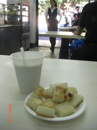 ![]() 9月25日 木曜日 今日は帰国の日。 16:30台北発成田行きの中華航空機。 朝は7時におきて8時前にはチェックアウトした。 5日間お世話になった部屋に別れを告げる。 ![]() フロントへ行くと、 あいにく、いつものおばさんはいなく、 他のおばちゃんが弁当を食っていた。 「チェックアウトしたいんですが」と言うと、 「あ〜、そこの部屋の人?いいよ〜、またきてね〜(ムシャムシャ…)」 あれっ?と思うほどの簡単な別れ。 お弁当に全神経を集中したかったみたい。 あっけに取られながらも 「謝謝。再見!」 とだけ言って去ってきた。 ありがとう! ![]() ホテル玄関前 ![]() ホテル周辺の問屋街 ![]() 市民大道方面 台北駅付近の交差点ではいつも通り、 スクーターの大群。 ![]() 5日間だけの滞在だったが 毎日通った道を台北駅に向かっていくと、 最初は「危険極まりない!」と説教でもしたくなったスクーター達にも 愛着がわいてきた。 しかし、まだまだ食べ歩きの時間は半日残っている。 今日は、また芸能人御用達のB級グルメを味わう予定だったのだ。 荷物を台北駅のコインロッカーに預け、 新浦駅へ。 ![]() MRTには数え切れないほどのったけど、 安い、きれい、早いの3拍子が揃った最高の電車だった。 ただ、日本よりも携帯でおしゃべりしてる人が多い。 口に手を当てて遠慮がちな姿勢で話してるんだけど、 声がでかいからどうにもならない(笑)。 新浦駅に着き、 まずは一口小肉圓の店に向かった。 肉圓は101でも食べて、なかなかの味だと思ったんだけど、 見た目がどうもいただけなかったので、 かわいい肉圓を味わってみたかったのだ。 しかし、地図の場所にはその店(屋台)が出ておらず、 ほどなくして開店11時ということが発覚。 残念。 あのグロテスクな肉圓でも、 食べられないと思えばなおさら恋しい。 頭の中に描いていた今日の予定をどうにか組み直そうとしたけど、 11時にまたここにくるのはちょっと無理だったので、 近くにあった永和で朝食を摂ることに。 ![]() ここは豆乳や油条などの朝食メニューが豊富な店で、 市内に何店かチェーン店がある。 まずは黒豆乳と大根餅2枚を注文。 オーソドックスなメニューであるが、 どちらも食べるのは初めてで、 肉圓の代品となる価値は十分にあった。 ![]() 黒豆漿60元/210円 大根餅30元/110円(2個分) 黒豆乳は黒豆からできた豆乳。 グレーっぽい色をしていて、 普通の豆乳よりもさっぱりとしたコクがあってほのかな甘さ。 キンキンに冷えていて、 思わずおかわりしたくなるおいしさ。 豆々しくないさっぱりとした後味で最高だった。 大根餅のほうは塩味がしっかりとついていて、 もちもちした食感がまたよかった。 大根臭さはなく、気軽に食べられるスナックのような感じ。 肉圓は、作り方を調べて自作してみればいいさ。 ![]() 食べながらテーブルの新聞に目をやると、 「読空気」と言う題のコラムが載っていた。 中国語でもこのような表現があったんだ〜と思っていたら、 日本語の直訳らしい。 内容は、数年前に早稲田大学に留学していた台湾人の経験談のようなものだが、 そこで知り合った日本人のオタクA君の話。 (大学生で七三分けとのことだったので…) 2人はお互いの国の言葉を学びあうために週に何回か会う仲で、 最初は本当の友達付き合いをしてたらしいが、 だんだんA君の態度がそっけなくなったらしい。 A君はいつも「授業がぎっしりでいつも時間がないし疲れた…」 と言うだけで留学生は心配になったんだけど、 これが実は重大なメッセージ(会うのをやめにしよう)=読空気だったと言うこと。 A君は空気の読めない留学生にウンザリ気味になって、 最後には「もう会いたくないんだけど…」と心の内を明かしたらしい。 日本にいて、空気を読むことの重要性を知ったと作者は書いていたが、 同時にA君の存在が今では不確かなものに感じると締めくくっていた。 あらら…。 A君ってひどい…と憤慨してしまったが、 自分自身がA君とダブってしまい、なんとも嫌な感じ。 食欲が半減してしまうほど。 俺も中国にはじめて行った時、 あまりに厳しすぎる中国人の友達(家庭教師)に疲れてしまい、 同じような空気を送ったことがある。 空気を送った上に「もう中国語を教えてくれなくてもいい」と言ったのだ。 結局、俺の場合は返ってその件があったからこそ親友にもなりえたんだけど、 どこの国の人でも口で伝えないとまったく分かり合えない。 日本びいきとされる台湾人でさえもだ。 日本人の間で「KY」と言う言葉が使われるようになって久しいが、 「空気を読む」ことの意味が常識の範囲を超えてしまっている。 おかしい。 おやじギャグを言ってみただけで「KY」のレッテルを貼られる(人がいる。汗) 俺が思うに、 ヘタに空気が読める人というか、 周りに合わせようと必死な人は、 世界的に淘汰されていくと思う。 ただ、さりげなく空気が読めるスマートな人間になりたい…。 豆乳をちびちび飲みながらそんなことを考えてたら、 あ