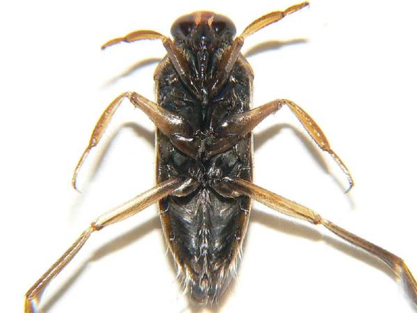 | 分類 | カメムシ目・マツモムシ科 | 解説 | 池や沼などに見られる。小さな魚やオタマジャクシなどの体液を吸う。指を刺されることがあるので注意。 |
