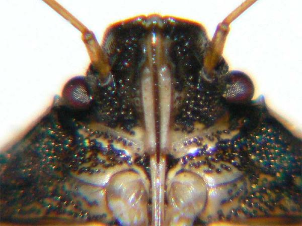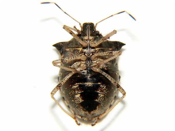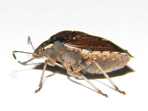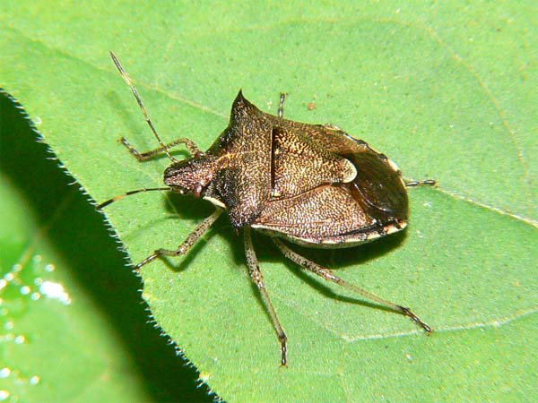 | 分類 | カメムシ目・カメムシ科 | 解説 | 両肩の部分が鋭く尖る。キク科のヨモギやアザミ、バラ科の植物などに見られる。 |