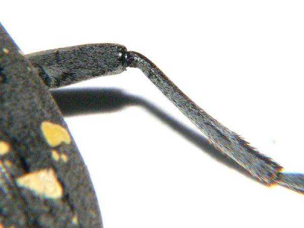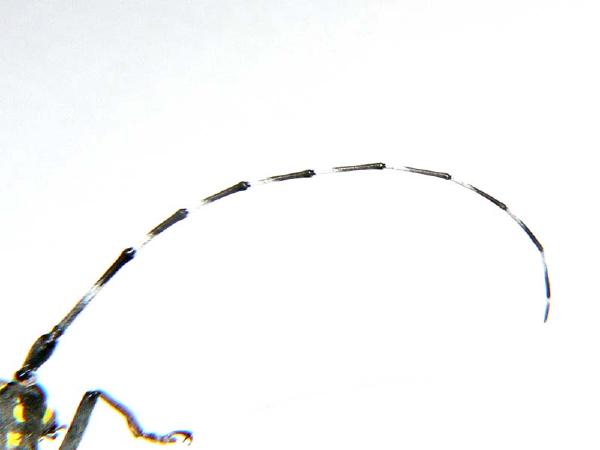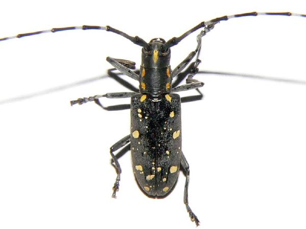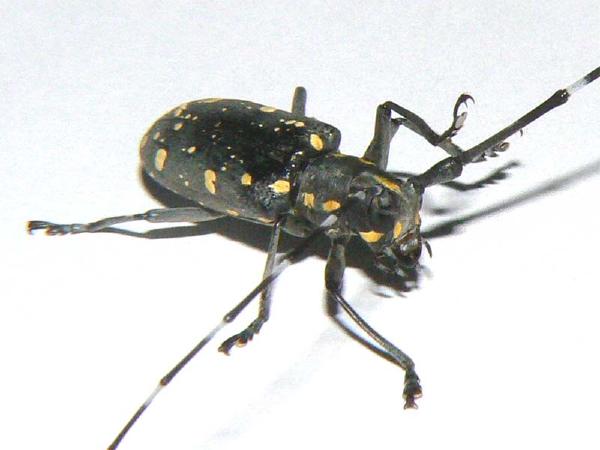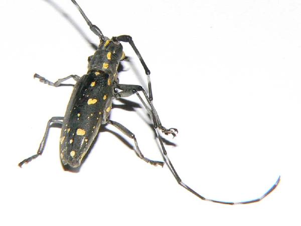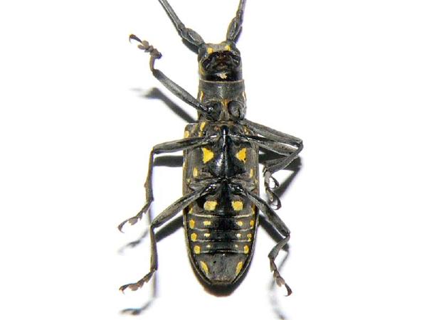 | 分類 | コウチュウ目・カミキリムシ科 | 解説 | クワやイチジクに集まり、その害虫として知られる。灯火に飛来することがある。最近では北に分布を広げ、東北地方まで拡大している。地域によって紋様やその色が変化に富む。幼虫で越冬。 |