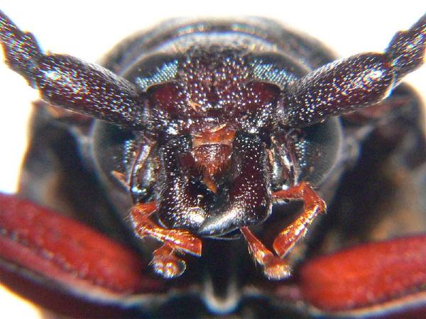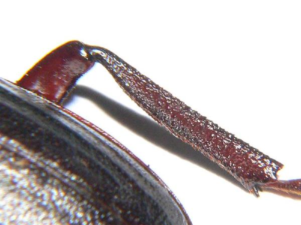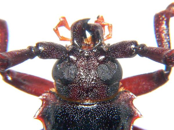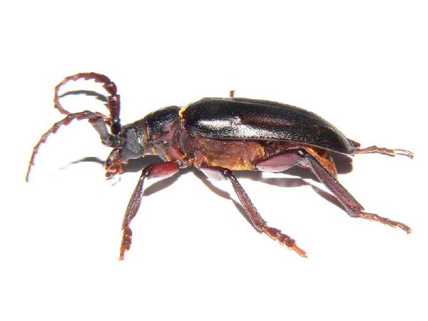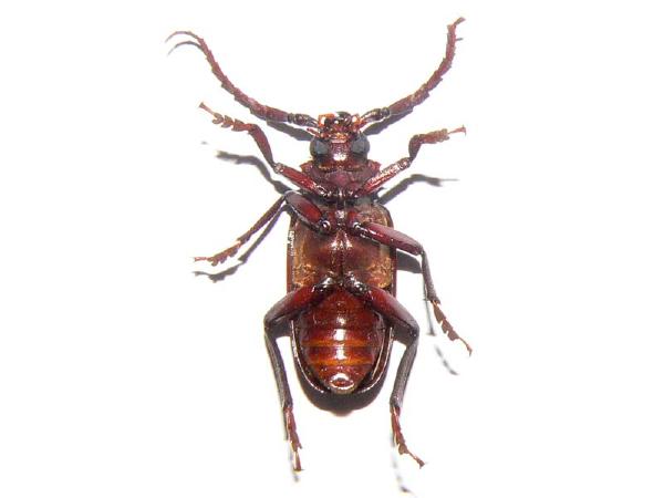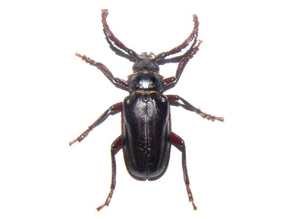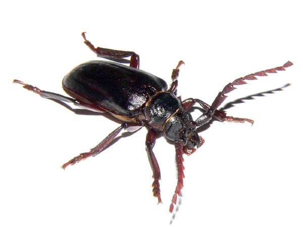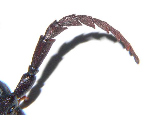 | 分類 | コウチュウ目・カミキリムシ科 | 解説 | 触角がノコギリ状になっているのが特徴。夜行性で外灯などに飛来することがある。他のカミキリムシの仲間が首を擦りつけて「キーキー」と音を出すのと違い、後脚を体に擦りつけて「シュッシュッ」と音を出す。 |