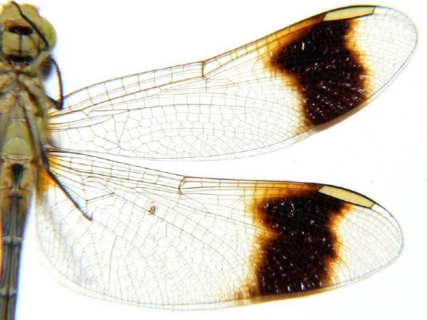 | 分類 | トンボ目・トンボ科 | 解説 | 低山地から山地にかけて見られる。一般的に「赤とんぼ」と呼ばれる一種で、羽に茶色の帯がある。このようなトンボをオビトンボ型といい、他にコフキトンボの♀などがいる。♂は成熟すると真っ赤になる。尻尾で水面を叩いて産卵(打水産卵)をする。 |