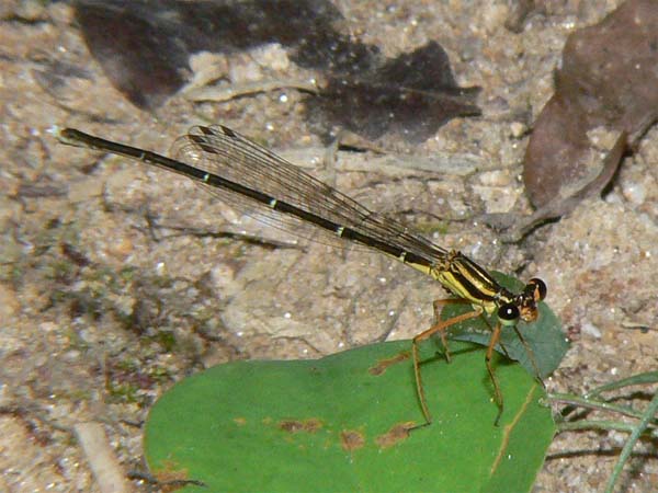 | 分類 | トンボ目・モノサシトンボ科 | 解説 | ♂は青白く、♀は黄緑色をしている。平地から低山地にかけて、水辺周辺の草などにとまっている。 |